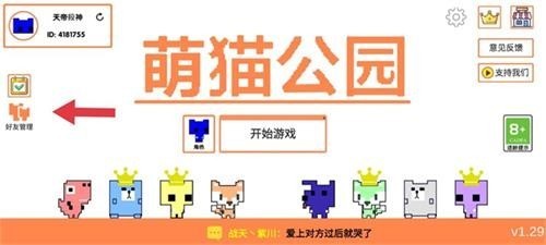 1、进入萌猫公园联机版”游戏后,点击左侧的好友管理按钮。