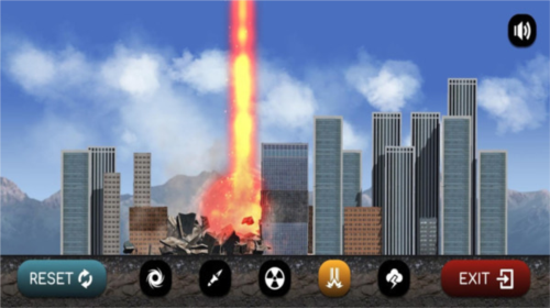 游戏以无任务、纯破坏”为核心理念,玩家无需复杂操作,只需尽情释放破坏欲望。通过撞击、爆炸、焚烧、洪水、龙卷风、陨石坠落等多种方式摧毁城市中的各类目标。在限定时间内达成指定分数即可顺利过关,节奏紧凑、反馈直接,带来极强的解压体验。