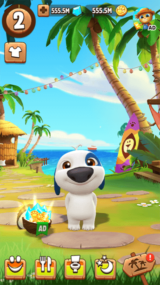 4、在游戏中领养新虚拟宠物汉克,他不仅会用滑稽的腔调重复你说的每一句话,他还有更新奇的招式!并且汉克的奇妙历险和上厕所的小把戏,一定会让玩家感觉到捧腹大笑,并且再游戏中还有许许多多的笑柄呢!