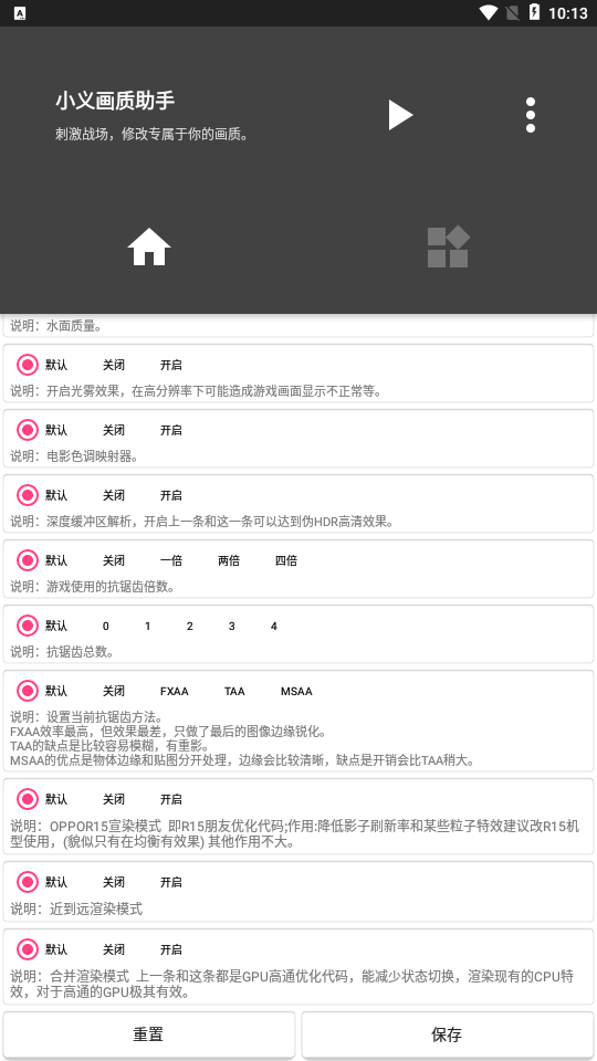 2、支持多种游戏:小义画质助手支持多款热门游戏,如和平精英、地铁逃生和暗区突围等,满足不同游戏玩家的需求。