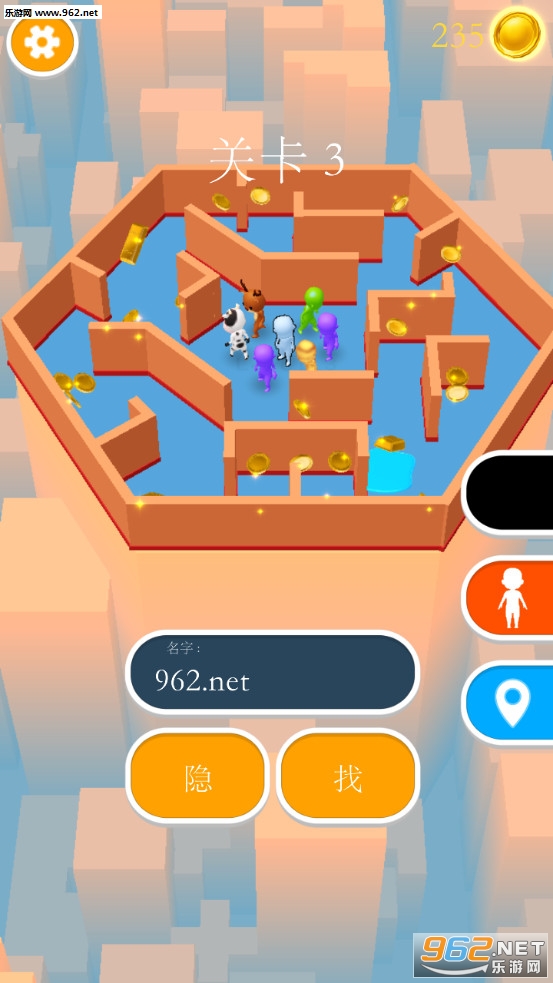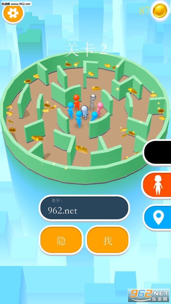 非常有趣的一款以躲猫猫玩法为核心的休闲游戏,你在游戏中可以选择躲猫猫中的两个阵营,藏在一个别人找不到的地方,或者快速的把你的小伙伴们找出来吧!