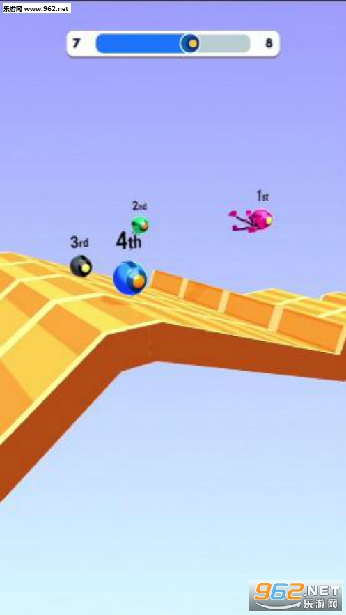 2、向下的坡度地形,就可以变为球形状态,让球体向着前方进行滚动速度更快;