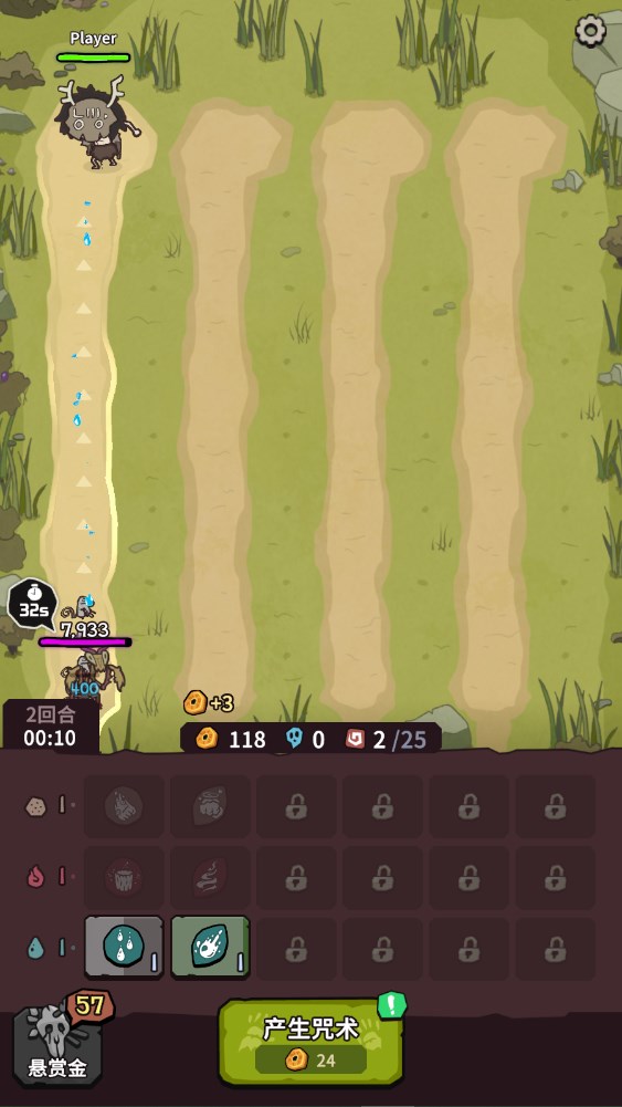 3、三个一样的咒术可以合体升级,变成更强大的咒术。