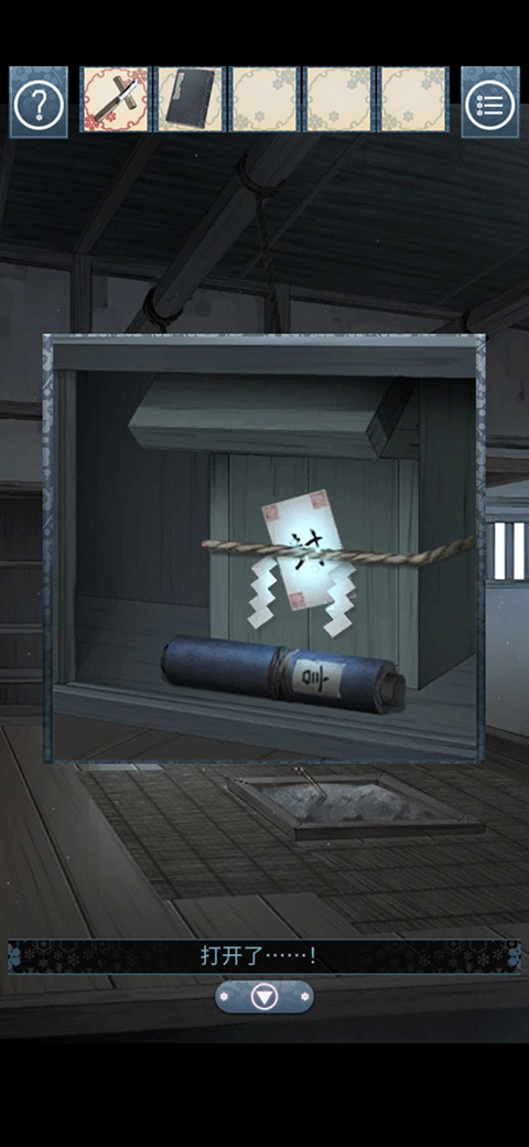 剧情ing,来到拿衣服的房间,有一个符咒忽然飘下来,捡起来以后想要放回去,发现身高不够,拿起旁边的梯子,把梯子放在地上,一下就长高了,放好符咒以后拿到碗,开始化缘路。