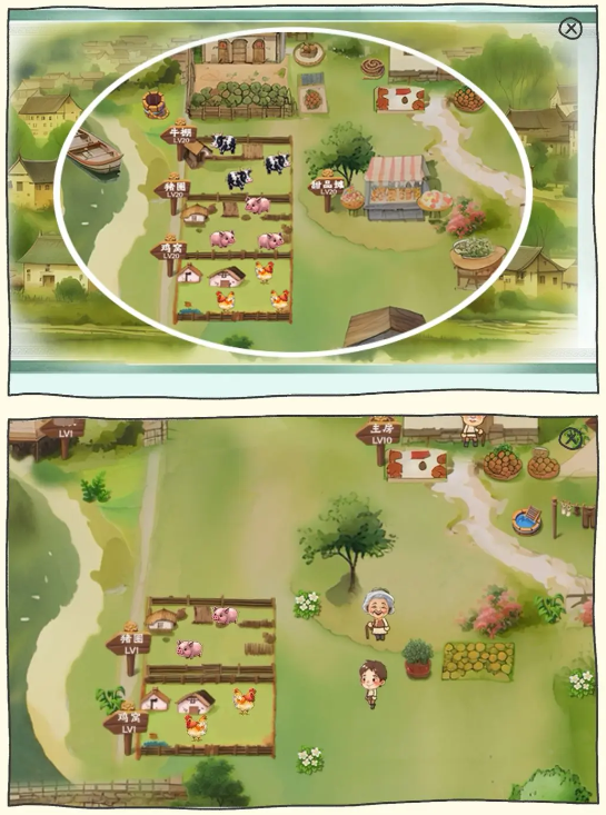 光有鸡蛋和鸡肉还不够?别急,还有 猪圈 和 牛棚 等着你解锁呢!玩法和鸡窝类似,但需要更多饲料和资源噢!想要收获牛奶,猪肉等更多的农产品,实现肉肉自由,就赶紧养起来吧!