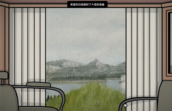 2、我们首先在马车上,根据提示我们可以拉开窗帘看看。