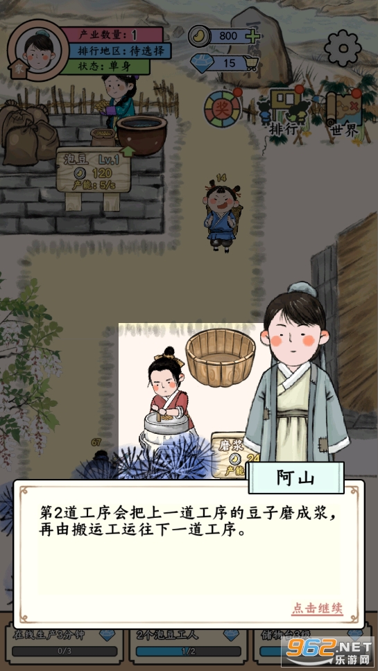 这是一款以古代工厂流水线为主的模拟经营游戏。