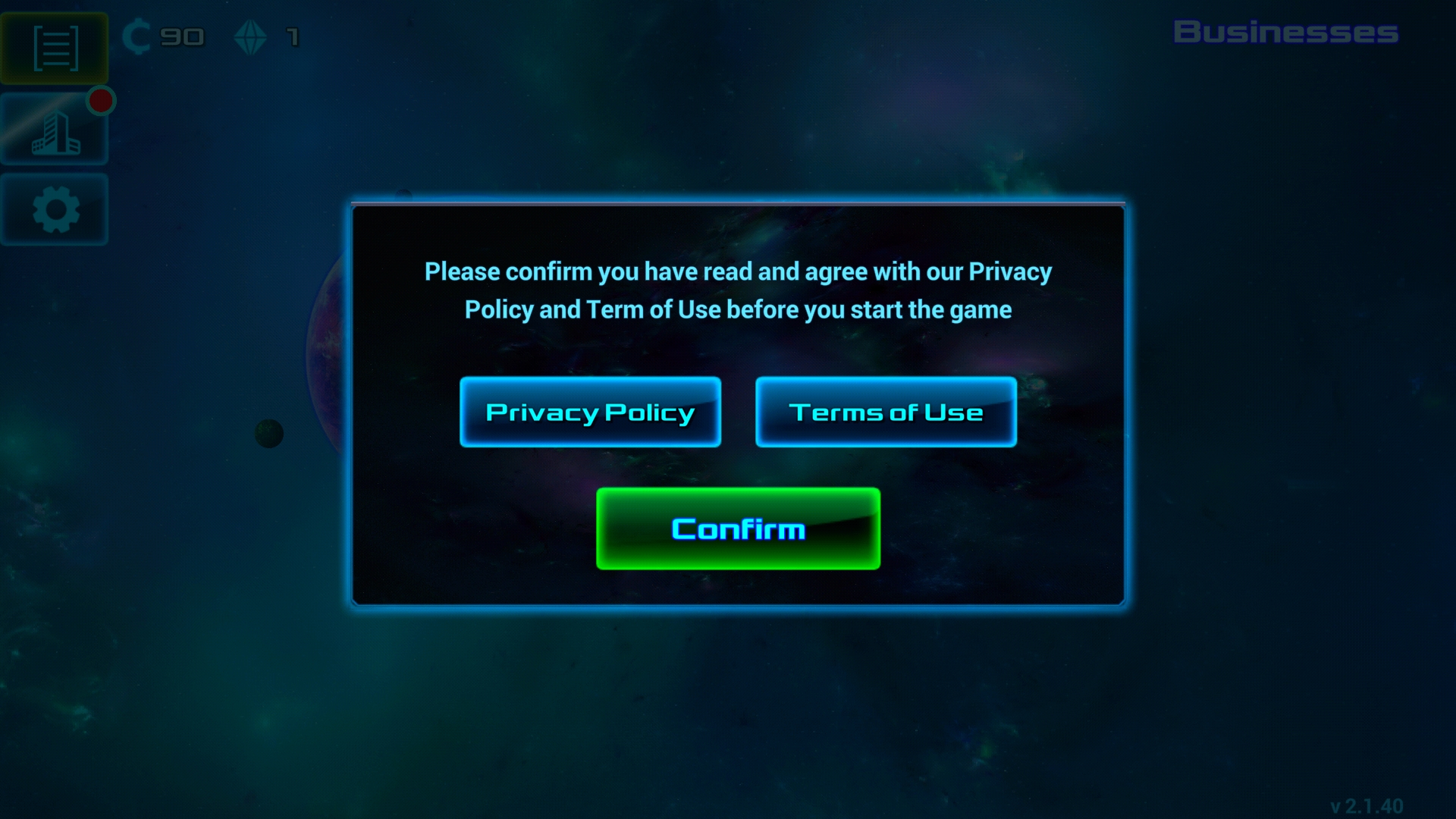 1、打开太空业务大亨中文版,进入游戏主界面,选择【/confirm/i】选项,
