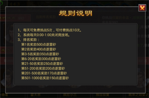 竞技场位于主城建筑内(非主界面图标),是玩家进行1v1公平对战的核心场所。每日挑战次数有限,但奖励丰厚——排名越高,每日可领取的资源与道具越优厚。建议优先挑战当前可见列表中排名最高的对手,以快速提升自身名次。奖励定时刷新,记得及时领取,切勿错过!
