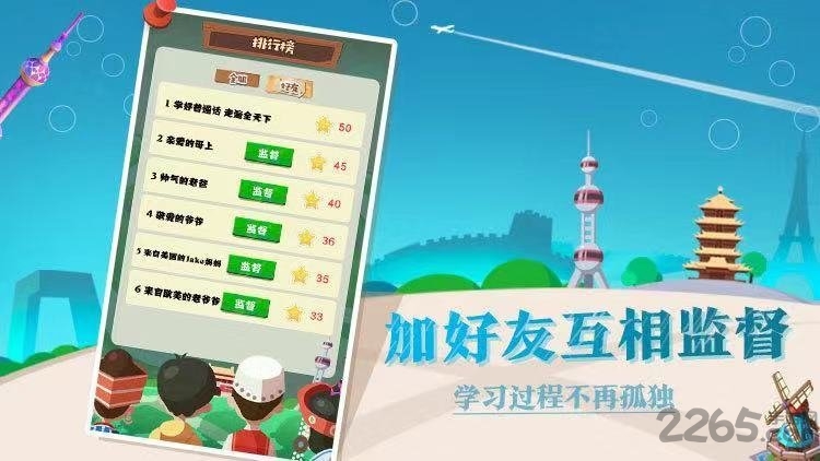 ·在游戏中互相加好友,在排行榜上互相监督对方的学习进程,非常有趣