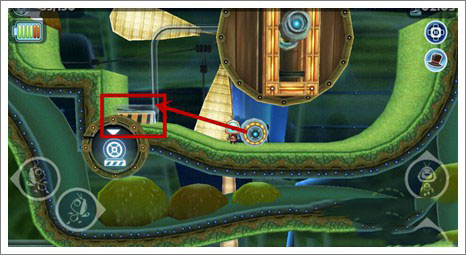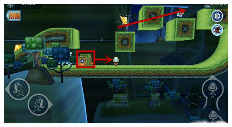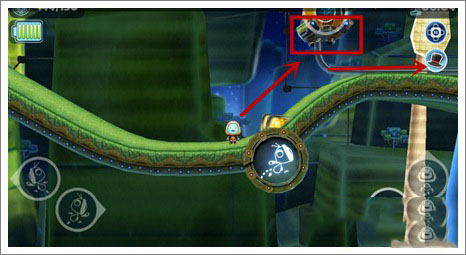6、这里可以利用右下角的道具吸附在上面,转动,连续前进三个左右,跳跃到第二层,还是如此方法吃掉齿轮。
