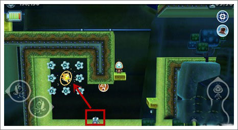 1、第四关有几个地方是需要注意的,其他地方基本上都不难,首先和开始一样,沿路吃掉齿轮。