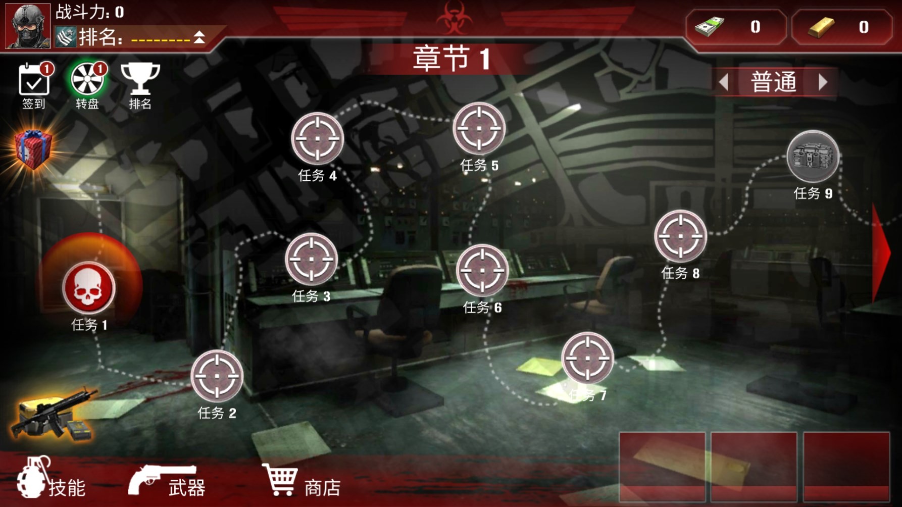 2、进入游戏后,直接点击任务列表中的任务1”,然后点击play”按钮开始行动。