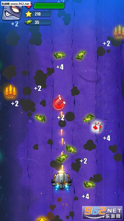 1、收集金币来升级你的飞船和武器。
