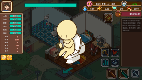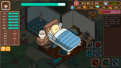 游戏细致还原了角色的多维状态,包括心情、体力、健康与卫生等数据,任何一项失衡都可能影响效率甚至触发负面事件。你可以通过工作赚取收入,购买美食补充能量,或投资学习提升能力。食物不仅满足口腹之欲,更是维持高效创作的关键。这种贴近生活的细节设计,让宅”的日常变得有血有肉、真实可感。