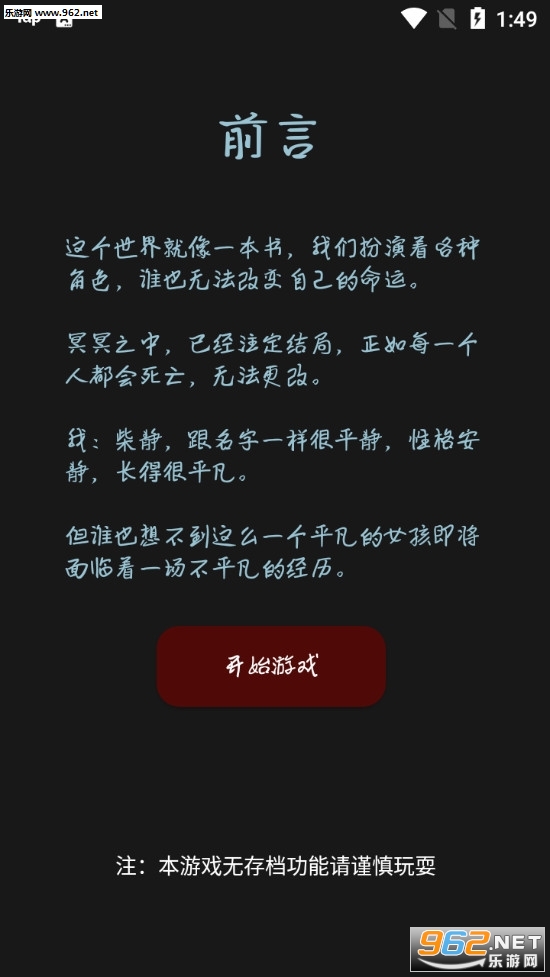 文字剧情游戏,玩家需要根据给出的一些对话来做出选择,你的选择决定剧情发展,有着丰富的剧情可以体验,在后续作者还会加入新的章节,喜欢的朋友可以下载试试。