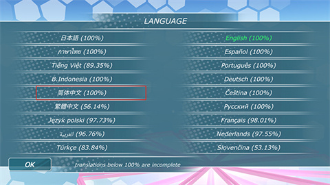 3. 选择简体中文(100%)”,点击OK”确认即可。