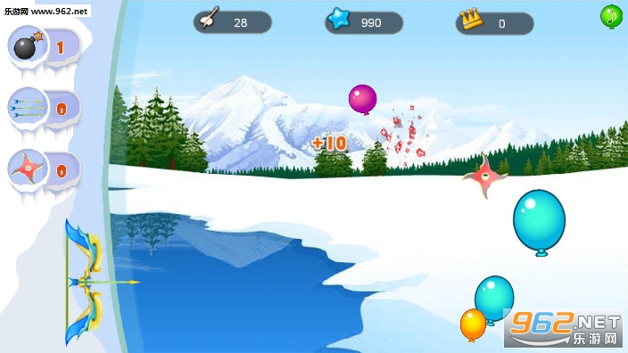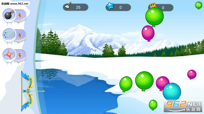 《气球射击高清安卓版》是一款休闲解压小游戏,在这个冰天雪地世界中会有很多的气球一直向上漂浮,你有很多的东西可以拿来扎破这些气球,弓箭,飞镖,炸弹等等,合理的运用你的武器,扎破更多的气球,获得奖励,再去兑换武器。