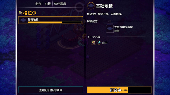 7、在制作界面点击心得可以研发不同的配方,每一位NPC都有不同的心得可以学习。