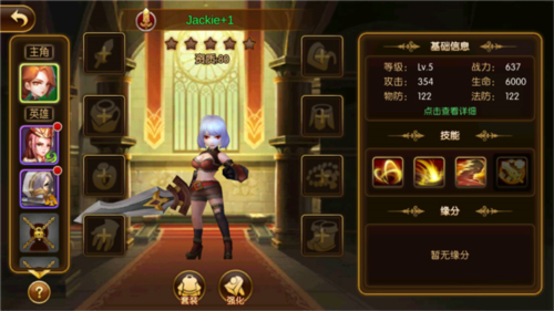 《幻想英雄2》本质上是一款以资源高效利用为核心的卡牌养成游戏,涵盖英雄培养、装备强化、宝石镶嵌等多条成长线。游戏采用5人上阵机制(1主角 + A/B双小队),前期建议集中资源打造一支主力队伍,待进入中后期再逐步扩展培养范围,避免资源分散导致战力瓶颈。