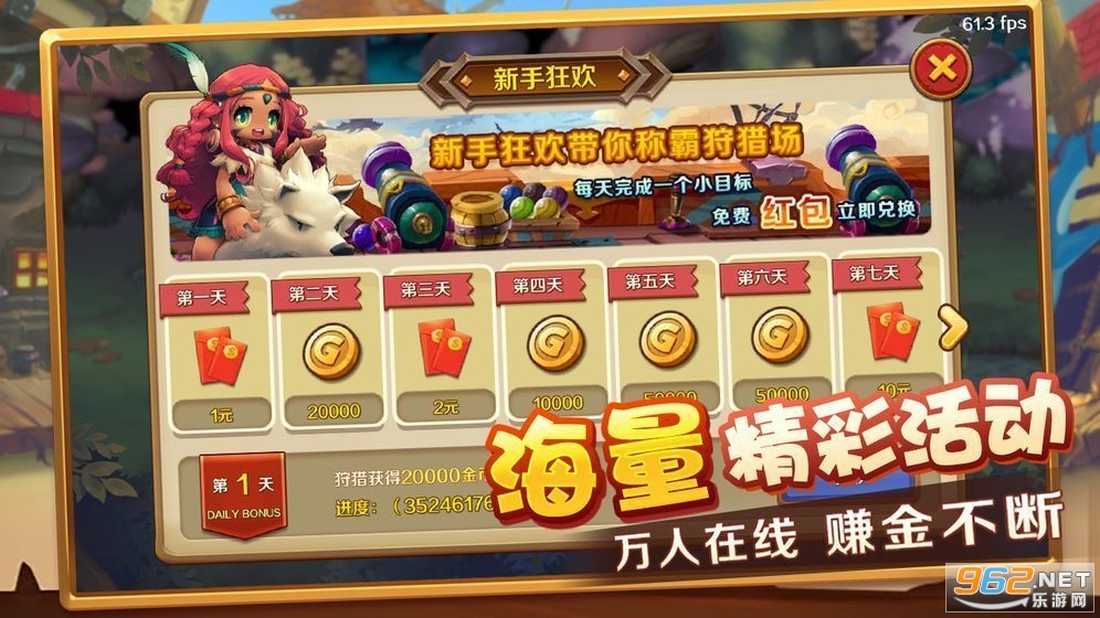1. 登录游戏后完成基础任务赠送5000+2w金币,进入狩猎场选择自动挂机即可,需要注意领取红包,领取红包可以直接提现到。