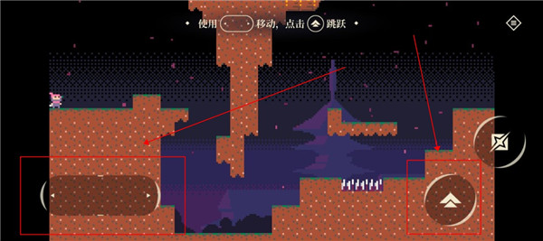 3、左侧为方向控制键,用于角色上下左右移动,右侧则是跳跃按钮