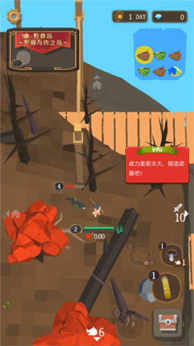 手持武器后,即可主动迎战岛上魔物。胜利后将获得经验、食物、装备或高级素材,为后续锻造与升级提供关键支持。