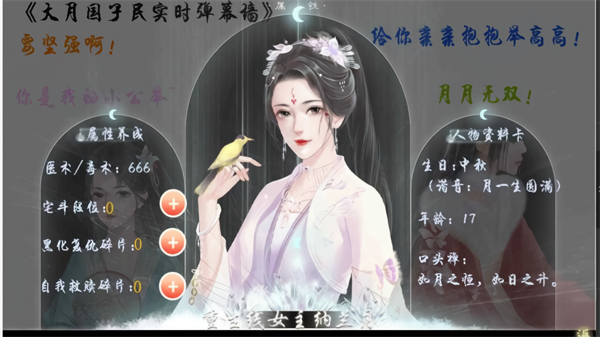 本作采用独特的双女主双线叙事:前期吴笛线以正叙展开,纳兰月线则以倒叙推进;后期两条故事线将自然合流,根据玩家在前期积累的数值(如宅斗段位、好感度、属性点等)智能判定进入哪一结局分支。这意味着你的每一个微小选择都可能影响最终命运——没有错误路线”,只有不同的侧重与体验。两个女主的命运彼此交织、相互影响,共同构建出一个逻辑严密、情感丰沛的宏大叙事世界。
