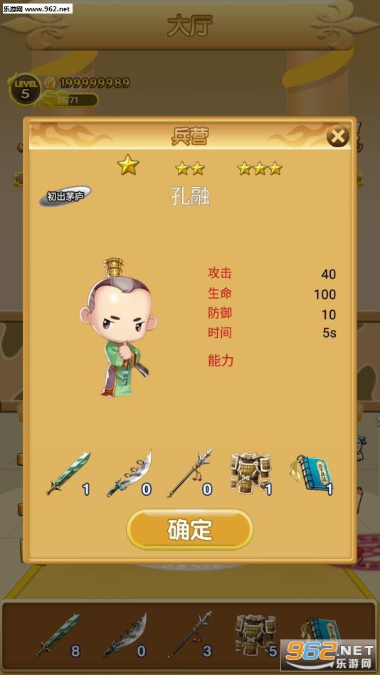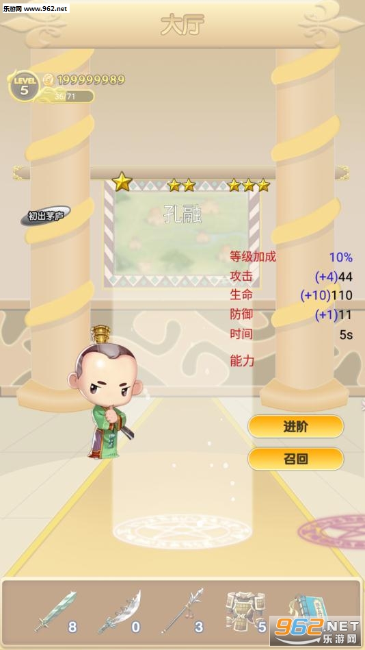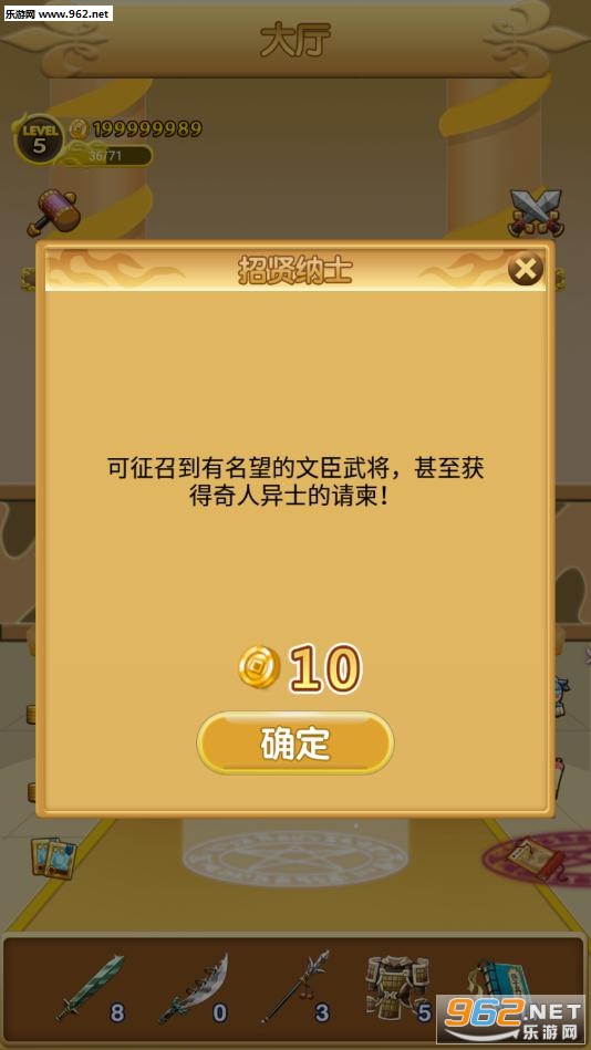 4.招兵买马,运筹帷幄游戏中每个武将将会有不同的技能,玩家可根据不同的将士更换不同的队形,发挥其最大的威力,他们在战斗中扮演的角色也将更重要。