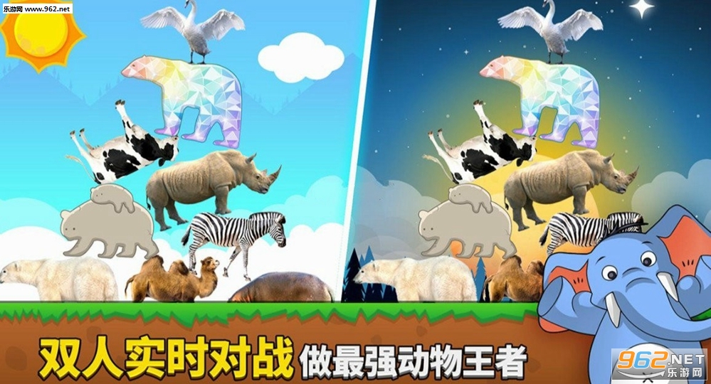 《我的动物贼高游戏》是一款画面清新的以动物为题材的堆叠休闲手游,游戏中玩家的任务就是将大象、犀牛、斑马、奶牛等众多的动物堆叠到一起,双人试试对战,采用回合制玩法,看看谁叠的最高,率先倒下的人比赛失败,保持平衡打败一个个对手。