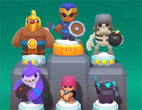 当奖杯达到100时,你将解锁特殊地图玩法。每张地图中央随机生成一块特殊地砖,开局时放置其上的单位将获得强力增益: 治疗地砖可在10秒内恢复5点生命; 能量地砖直接提供6点初始能量; 镜像地砖则复制一个40%血量的相同单位(400杯解锁)。 善用地砖效果,往往能成为翻盘关键!