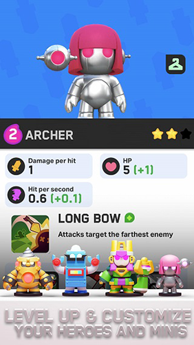 战场局势瞬息万变,你需要预判对手动向,灵活调整阵容站位。游戏提供坦克、近战、远程等多种单位类型,支持通过战斗中升级迷你”来激活更强能力。每一次布阵都是一次策略博弈,没有固定套路,只有不断进化的战术思维。