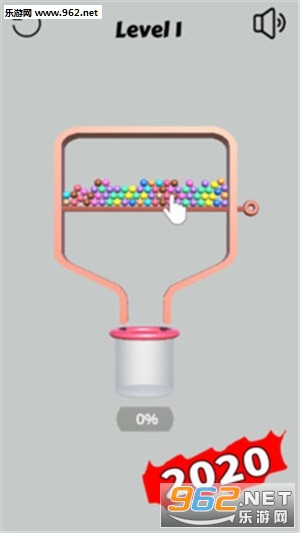 在这里,你只需拖动阻碍球球掉下来的阀门,让球球全都掉落于瓶子管道中。