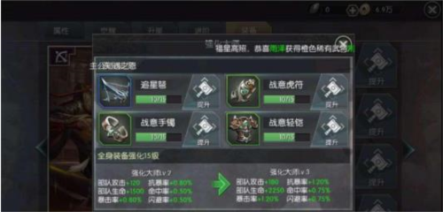 当全身装备强化至特定等级,将激活强化共鸣”效果,带来全属性大幅提升。建议均衡强化各部位装备,避免资源浪费。