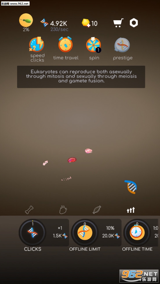 一款非常有创意的模拟进化类型的休闲游戏,我那件爱在游戏中能够合成各种不同的生物,改变生物的基因,完成图鉴,可玩性还是挺高的。