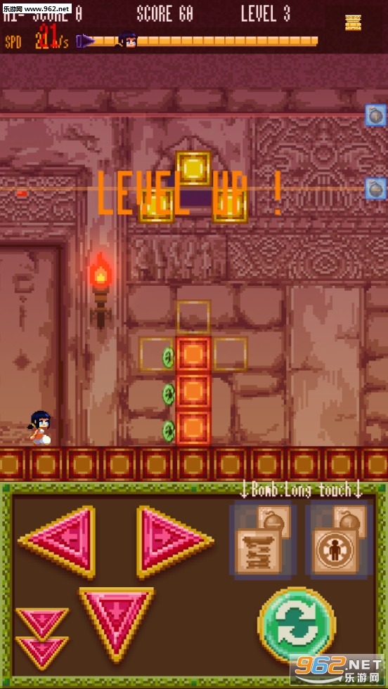 一款玩起来还挺有意思的休闲游戏,经典复古的像素风画面,对方块进行合理的安排,每一种不同类型的方块功能都不一样,让小女孩越走越远吧!