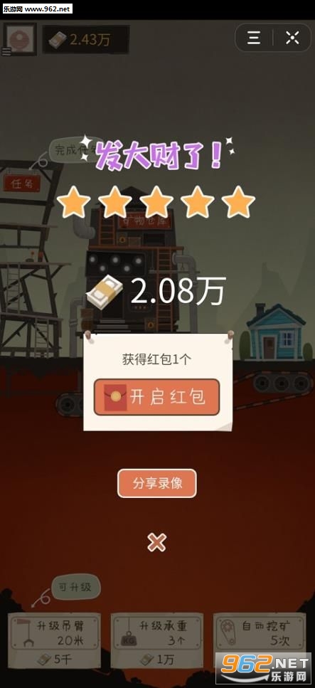 2、越深的矿洞获得的稀有材料越多,随时都能赚到更多的钱,成为家里有矿的人;