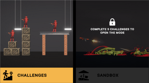 从主界面点击【Challenges】进入挑战模式,通过拉动小绿火柴人瞄准并击中小红火柴人完成目标。调整角度后发射,成功抵达终点即可解锁第二关沙盒地图。在沙盒模式中,将小绿火柴人拖至空白区域,点击它还能触发跳舞、跑步、摄影等趣味动作,进一步探索互动可能性。