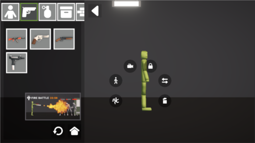 进入游戏后,首先从三个地图中选择其一。点击左侧像素头像框,即可部署布娃娃角色。通过点击角色,可控制其行走、转身等基本动作。左侧上方提供武器、弹药、人物等资源库,拖入地图后,再点击对应方框即可为武器设定指令,实现精准操控与战术执行。