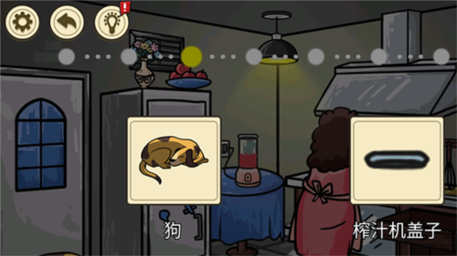 进入房间后,先打开榨汁机盖子放入苹果,启动搅拌后再打开盖子;接着开水龙头、打翻垃圾桶、点击陶瓷刀、启动通风口开关,最后点击吊灯。每一步都至关重要,选择正确即可100%通关,错误则可能导致任务失败。