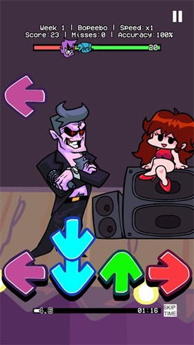 黑色星期五之夜音乐大战版是一款融合节奏挑战与剧情对战的高人气音乐手游!游戏在保留原作经典玩法的基础上,加入了全新模组、原创故事线和丰富曲库,带来耳目一新的视听盛宴。玩家将在动感节拍中与各路对手展开音乐对决,凭借精准操作与节奏感完成关卡挑战,体验手速与反应力的双重考验。无论你是节奏游戏老手,还是初次接触此类玩法的新玩家,都能在这里找到属于自己的节奏快感!