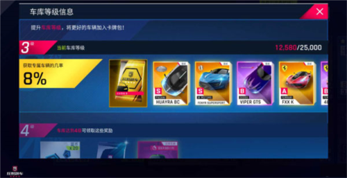 车库等级由所有车辆性能分总和决定,直接影响可参与的赛事级别。通过升级车辆、解锁高星赛车(如S级)可显著提升车库价值。建议优先升级低阶车辆以高效积累性能分,避免在高阶车初期投入过多资源。每次升级后,车辆性能评分将同步增长,助力你更快迈入更高联赛。