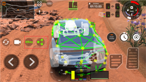 游戏内集成多项辅助工具:点击相机图标可切换天气与光照条件;视角按钮支持第一人称、第三人称及自由环绕视角切换;开启建模框架”与重心偏移图”功能,还能直观观察车辆结构受力变化,兼具娱乐性与科普价值。无论是想认真研究物理碰撞,还是单纯享受飙车快感,这些功能都能为你提供更丰富的交互维度。