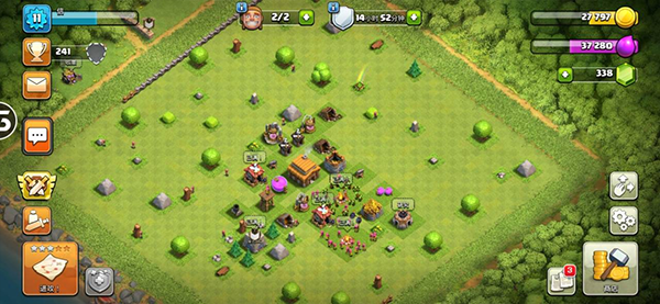 5、使用加农炮、箭塔、迫击炮、城墙和陷阱等防御设施保卫村庄。