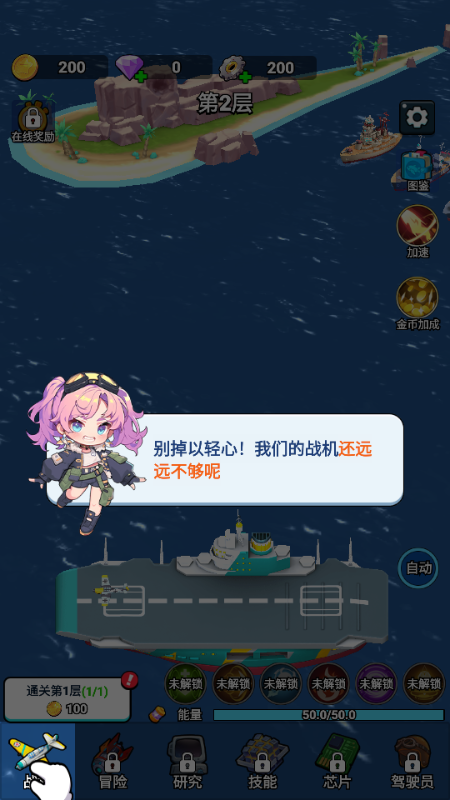 尽管操作简单,但《空战指挥官》在多系统培养”方面却提供了丰富的深度。玩家可以从多个维度培养自己的战力编队,其中升级舰载机更是提升整体作战效能的关键。这种多层次的养成体系,保证了游戏内容的新鲜感和长期可玩性,让您在轻松游戏的同时,也能体验到策略搭配的乐趣。