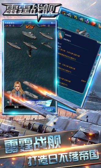 体验海战感受热血,《雷霆战舰》带您重回残酷的二战年代。以搜寻各大传奇海舰为线索,拉开了二战经典海战的序幕。《雷霆战舰》中搜集了几百种二战时期经典海舰,营造了浓厚的军事氛围,重现气势恢宏的海舰集团作战的场面。