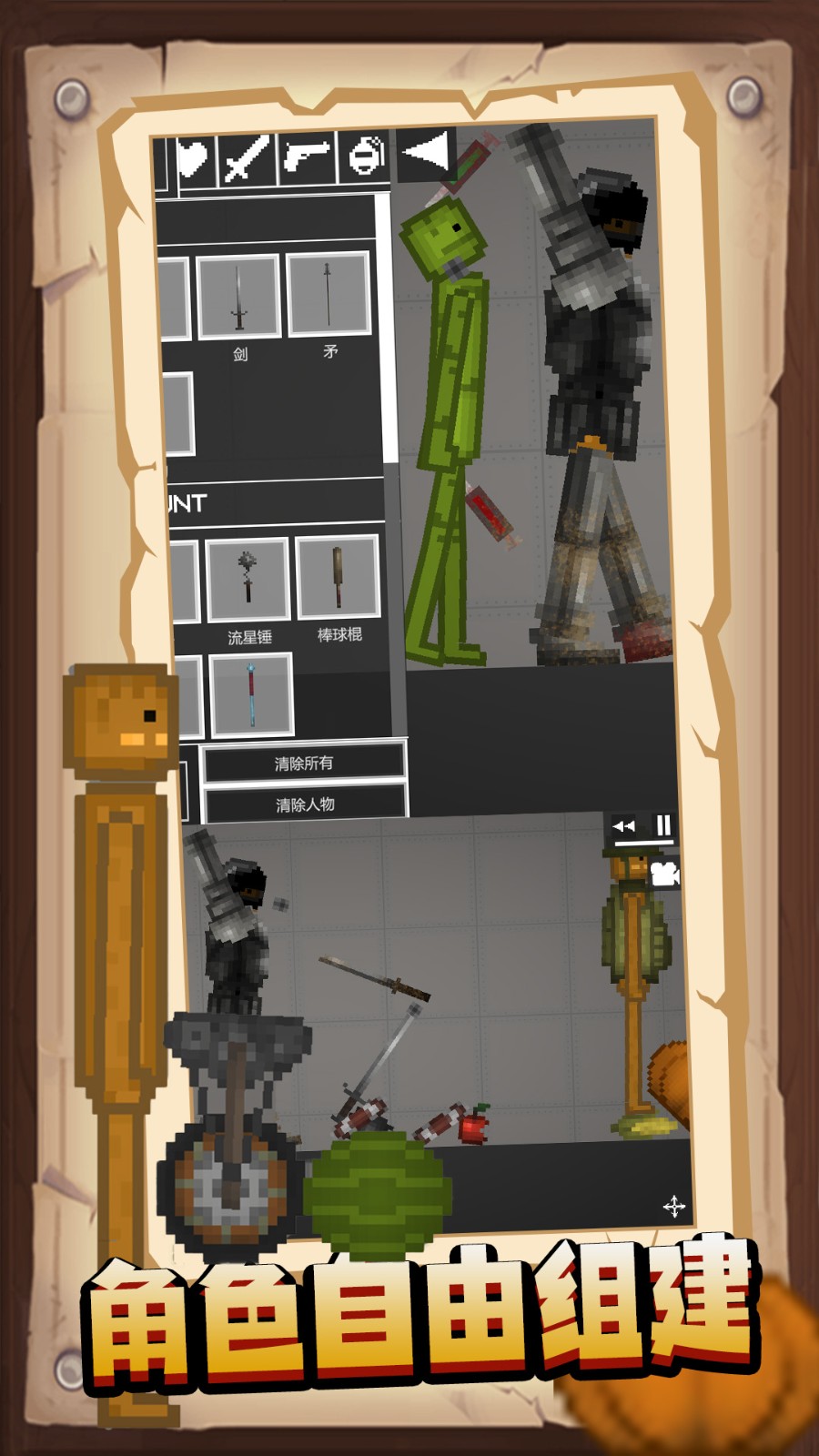 《疯狂对战模拟器》是一款集沙盒创造、策略战斗与自由冒险于一体的趣味像素风游戏。在这里,你不仅是玩家,更是造物主!从角色外观到武器装备,从地图场景到战斗阵容,一切皆可自定义。无论是单人闯关、PVP对抗,还是天马行空的沙盒创作,都能让你玩出无限可能,体验百变乐趣。