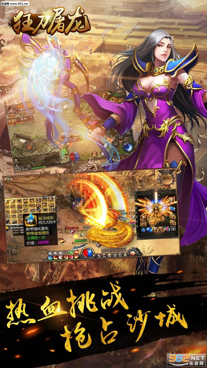 一款大型即时战斗热血pk类角色扮演游戏,游戏的玩法内容丰富刺激,各种竞技pk,热血攻城,千人围战沙城,自由对决应有尽有,还有各种酷炫的装备技能,神兽坐骑,随意使用,带给你最经典的传奇体验!
