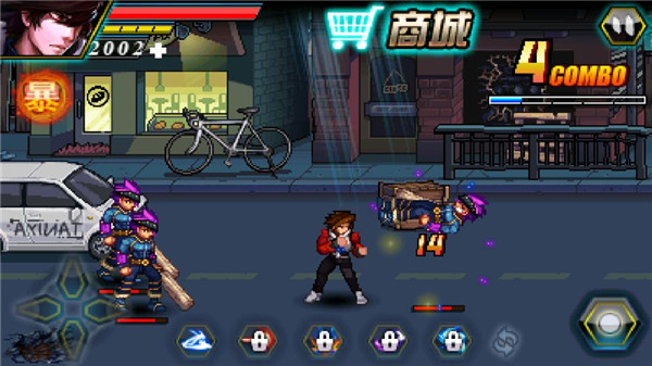怒火铁拳街头拳皇是一款复古与现代结合的经典动作格斗闯关游戏。游戏采用先进的图形引擎打造,呈现出高清像素风的画面质感,并延续经典的横版闯关机制,为玩家带来一场场紧张刺激、拳拳到肉的格斗体验。