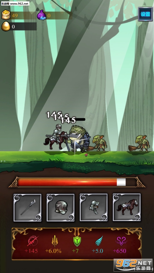 一款非常有趣的休闲闯关游戏,游戏中玩家将不断地合并来获得更好的装备,不断的进行战斗,获得各种各样不同的战利品,同时回到城镇中购买各种各样的道具和物品,不断的击败各种各样的敌人,游戏的玩法轻松有趣,成为战无不胜的骑士,推荐给喜欢冒险闯关游戏的玩家。